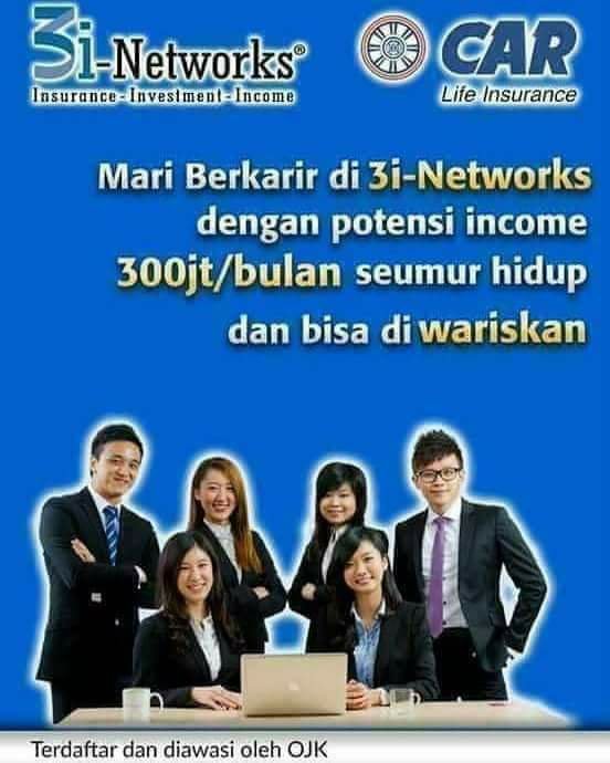 Apakah 3i-Networks legal dan dapat dipertanggungjawabkan secara hukum?PT AJ Central Asia Raya adalah perusahaan berbadan hukum di Indonesia, berdiri sejak tahun 1975 dengan memiliki ijin usaha yang jelas sebagai member Salim Group, serta terdaftar dan diawasi oleh Otoritas Jasa Keuangan (OJK) dengan Surat keputusan izin usaha nomor : KEP-013/KM.13/1987 Tanggal 18 Desember 1987.Produk asuransi jiwa yang ditawarkan/dipasarkan adalah produk asuransi yang terdaftar di OJK.